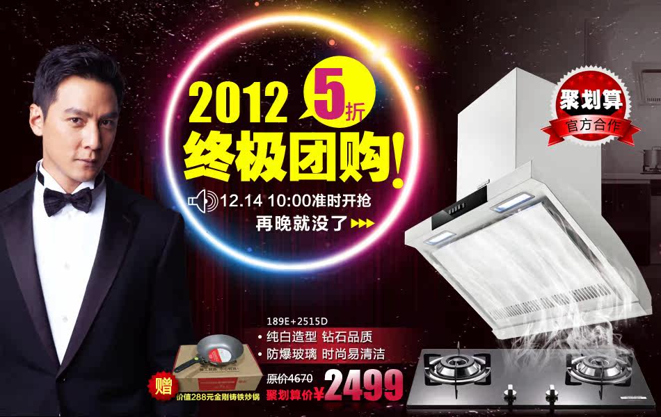 [厨卫电器] 德意经典厨房电器,油烟机燃气灶套装聚划算开团啦2499,历史最低! |