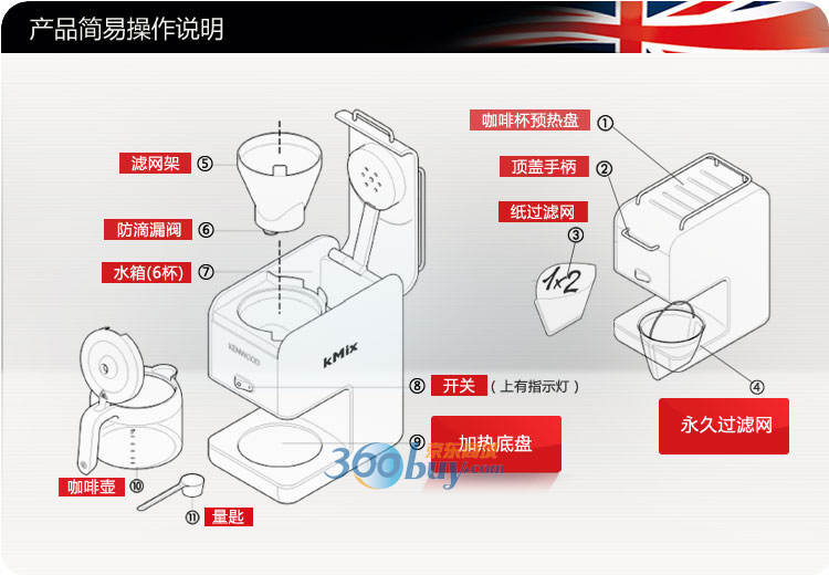 ② 贴心的加热底盘设计,令壶内的咖啡的温度一直维持在80℃上下,有效保证咖啡醇香浓郁的口感。 |  |