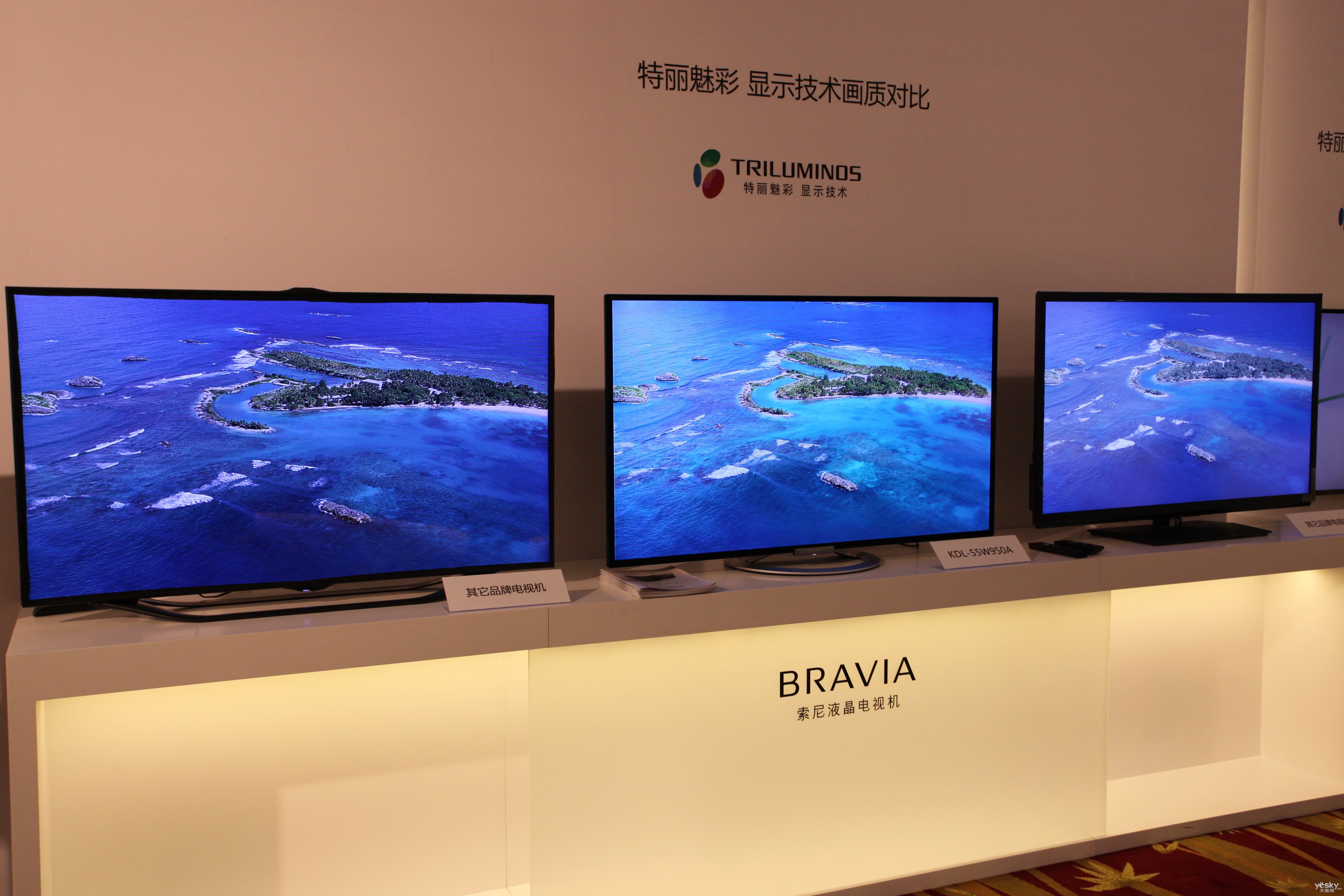 索尼55W950特丽魅彩TRILUMINOS广色域与三星,松下AB对比照 |