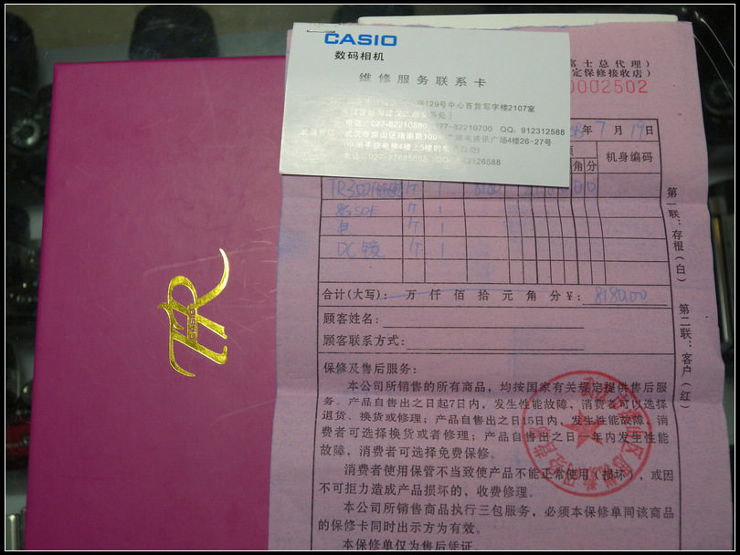 机器为全新礼品机,生产日期为六月底。保证全新原装。 官方标配:卡西欧TR-350单机 数据线 原装充电器 手绳 保修卡 外包装 收据 大礼包清单:原装相机包 闪迪8G闪存卡 相机镜 总计7500元