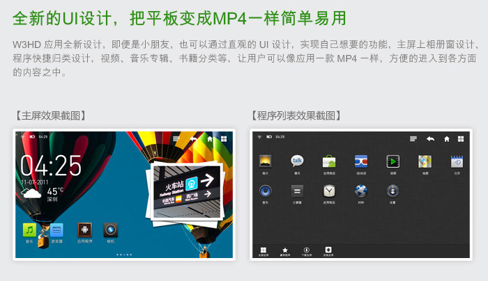 通讯:USB 2.0 高速 5Pin MICRO USB | 电源接口:DC-5V/2A | 视频输出:HDMI | 音频输出:3.5mm耳机立体声输出 | 机身 | 尺寸: 188x117x12.6mm | 操作方式:电容式触摸屏+机械按键 | 重量:约340g | 容量 | 内存: 8GB | 插卡扩容:128MB-16GB | 插卡方式:TF卡即插即用 | 屏幕 | 尺寸:7寸电容式触摸屏及TFT显示屏 | 分辨率:1024*600 pixels | 颜色:1600万 | 显示系统 | 系统字体:Android默认字体 | 标签语言:简体中文/英文及多国语言 | 菜单语言:简体中文/英文及多国语言 | 菜单系统:图形及文字菜单 | 支持文件格式 | 音频编码: | 音频格式:MP1,MP2,MP3, WMA, WAV, AC3, AAC ,OGG,APE ,FLAC,3GPP | 视频编码: | 视频格式:支持1080p高清视频:MKV、TS、FLV、AVI、VOB、MPG、DAT、ASF、RMVB、RM、MOV、3GP、MP4、WMV( 支持视频断点记忆播放) | 图片格式:JPG,BMP,GIF,PNG, JPEG | 音频播放 | 耳机最大输出功率:L(10mw) +R(10mw)(32Ω) | MP3比特率: 8kbps-320kbps | WMA比特率: 8kbps-320kbps | FLAC比特率: n.a | APE比特率: n.a | 歌词显示:支持 | EQ音效系统:支持 | 动态频谱:需APK支持 | 视频播放 | 格式及分辨率:支持最高1080P高清视频 | 屏幕扩展方式:支持 | 视频断点记忆:支持 | 快进快退:支持 | 语音录音 | 采样率:8K | MIC录音格式:3GPP | 录音方式: 内置MIC | 录音时间:约2300小时(8GB容量) | 其他功能 | 文本阅读:需APK支持 | 图片功能:支持小画面预览、幻灯片播放、画面旋转等功能 | 时钟功能:支持 | 秒表功能: 需APK支持 | 游戏功能:支持大型3D游戏 | G_SENSOR: 支持 | HDMI功能: 支持 | WIFI功能: 支持 | 桌面背景图更换:支持3D动态桌面 | 红外遥控功能:支持 | 万年历功能:需APK支持 | 其他功能:参见内嵌应用程序栏和支持的APK程序 | 音频播放:AudioPlayer,支持本地播放 | 视频播放:Videoplayer | 图片浏览:图库 3D图片管理模式 | 电子邮件:Google Email | 网页浏览器:Google Browser | 世界时间:Global Time,世界时钟 | 日历:Google 日历 | 文件管理:资源管理器 | 输入法:Android键盘 | 设置:系统设置 | 支持系统 | 主机系统版本:Android2.3 | OTG功能: 支持 同时支持USB鼠标/键盘 | 磁盘文件系统:FAT,FAT32,NTFS | 是否支持4GB以上文件: 支持 | 支持操作系统:Windows2000/XP/Vista/Win7 | 提供附件 | 说明书、保修卡、合格证、USB线、耳机、OTG线,遥控器(选配),充电器 | 工作温度 | -20度---60度 |