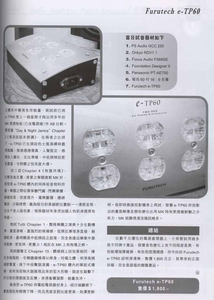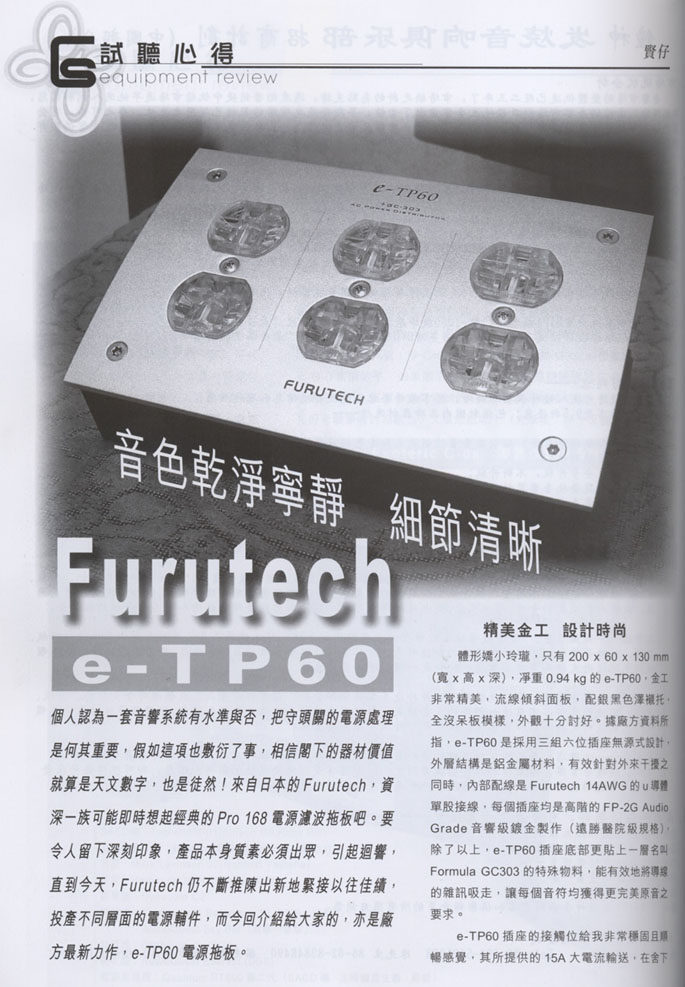 本新产品( FURUTECH e-TP60 +GC-303 AC Power Distributor 是因应目前的AV器材,因为使用了「污染电源」而无法将器材的功能完全发挥出来而设计开发的产品。