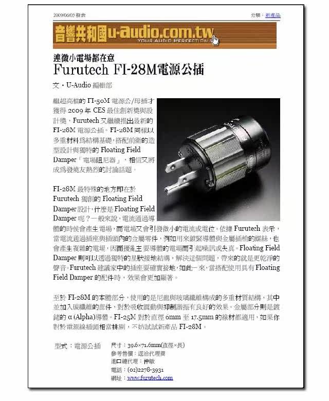若要说e-TP60是简化版的RTP-6,可说是一点也不为过。笔者本想将e-TP60与RTP-6比较一下,看看两者的表现如何,不过代理商告知Furutech将e-TP60定位在承继PRO.28N,所以参考的对象就由e-TP60改为PRO.28N。