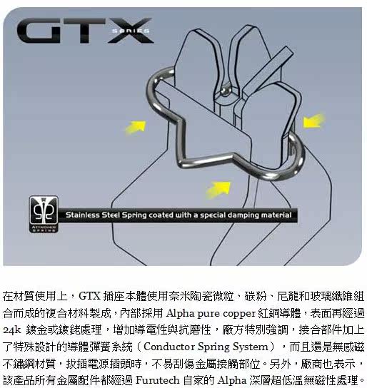 GC-303的天线效果即是把经由各部配件传导而来的电磁波以非接触性方式有效的吸收消除,所谓天线效果意即GC-303能够如天线一般具有接收的功能,并且巧妙的避免传统电源滤波器经过一串被动式组件产生音质劣化的弊病。