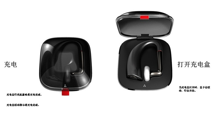 使用內置便攜盒充電,5小時通話時間,帶充電盒時通話時間為15小時(5+10h)