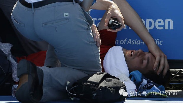 (图为法国选手Richard Gasquet在对阵俄罗斯选手Nikolay Daydenko时,试图用冰块为自己降温)