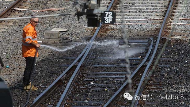 (图为Metro工作人员在给铁轨浇水降温。大概是为了杜绝09年高温晒化铁轨的事件吧。。。)