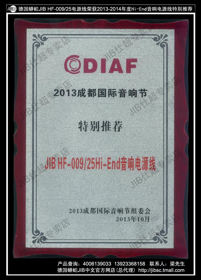 德国蟒蛇JIB发烧线材在2013-2014年度获得的最高荣誉大奖 |