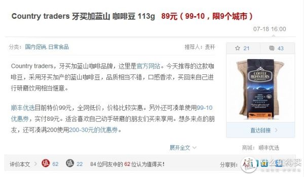 前言:此经验从楼主的个人角度浅析一下各种咖啡加工设备的特点,顺便汇总一下到现在为止“晒物广场”各位前辈咖啡达人们所晒的咖啡器具。作为一名自己还没制作过一杯现磨咖啡的小白,难免有遗漏与错误,请多包涵。不要说我是来骗金币的,我只是与大家分享一下这几天”涨的姿势“。 每个故事都是有起因的,我与咖啡的故事源于这样一条Country traders 牙买加蓝山 咖啡豆的主页推荐: