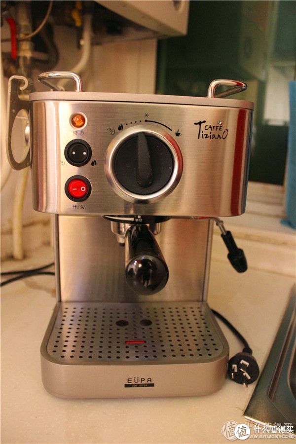 优点:操作方便,萃取率高,易出油 缺点:贵,老贵了 价格一般在4位数 半自动的就像@nickhaven童鞋的晒单:《就爱咖啡香!——— EUPA 灿坤 TSK-1819A 高压泵浦式咖啡机 使用三月感受》那样,要把磨好的咖啡粉放入手柄的“咖啡盒”中,再安装到咖啡机上: @水恋月 的晒单:《灿坤(EUPA)TSK-1819A高压泵浦式咖啡机晒单,多图带萌物~》也是同款机型: