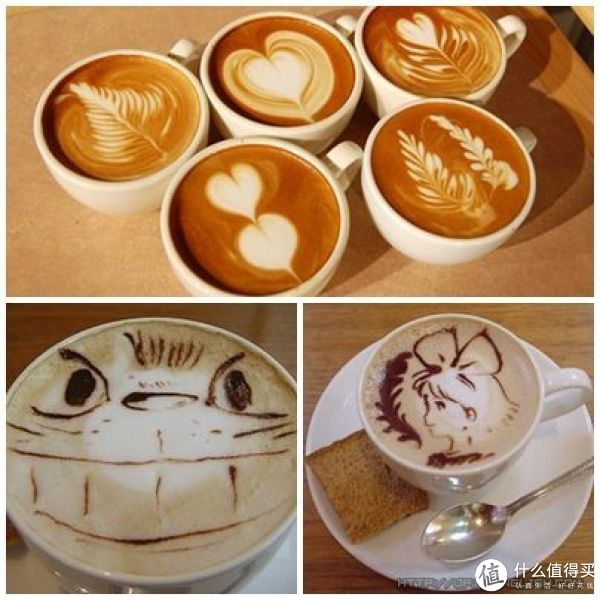 8.4。拉花、印花用具:包括拉花杯、撒粉模具等等。有了这些用具的帮助,再加上一双巧手,咖啡也能赏心悦目(一般是用拿铁什么的来创作): (图片来源于网络)
