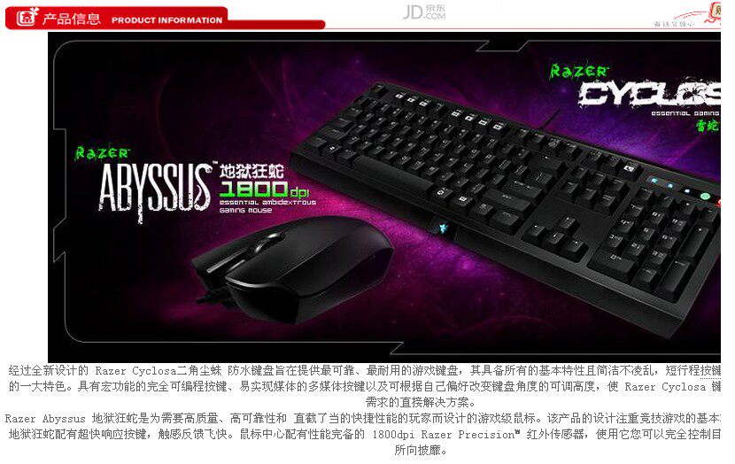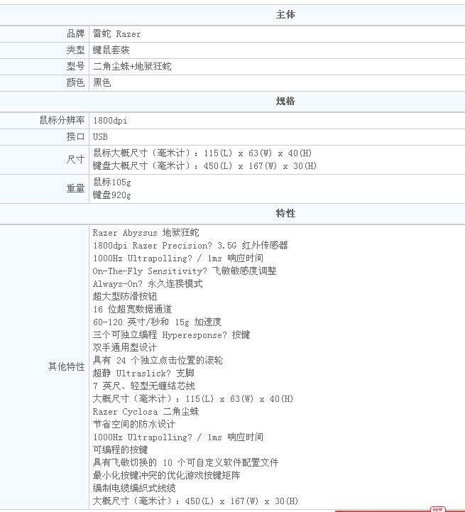 [笔记本/PC] 雷蛇(Razer)二角尘蛛+地狱狂蛇 游戏键鼠套装超值游戏套装! |