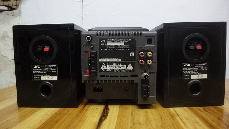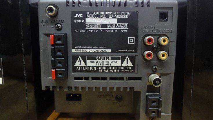 原装JVC/胜利 UX-MD9000 经典名机 微型组合 卧室书房首选 UX-MD9000 是JVC UX五个系列中最高型号的一款.原装正货.欧版.110V-230V可调电压.无遥控器需要自配.支持播放CD/CDR.读碟能力强.MD不正常.进不了碟.无维修过.其他功能全正常.带有AM-FM收音.FM收音87.5Mhz---108Mhz中国制式.灵敏度高.接收能力强.外观华丽高档.全电动CD仓盖.后面两组模拟一个光纤数码信号输入.可接电脑.手机.DVD音频等输入.当功放使用.。一组模拟和一个有源低音信号输出.搭配著名全频喇叭黑色钢琴烤漆音箱.声音通透.大动态表现也很满意.外形尺寸采用了紧凑型的设计.比较精致微型.为卧室和书房的首选.总体表现相当出色.音色不同凡响值得拥有. 参数: ●输出功率:30W