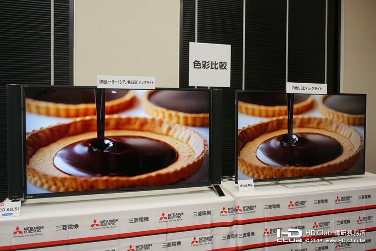 左边是LS1,右边是三菱传统之白色LED背光电视,两相比较可轻易发现色彩纯度更高、画面更立体。