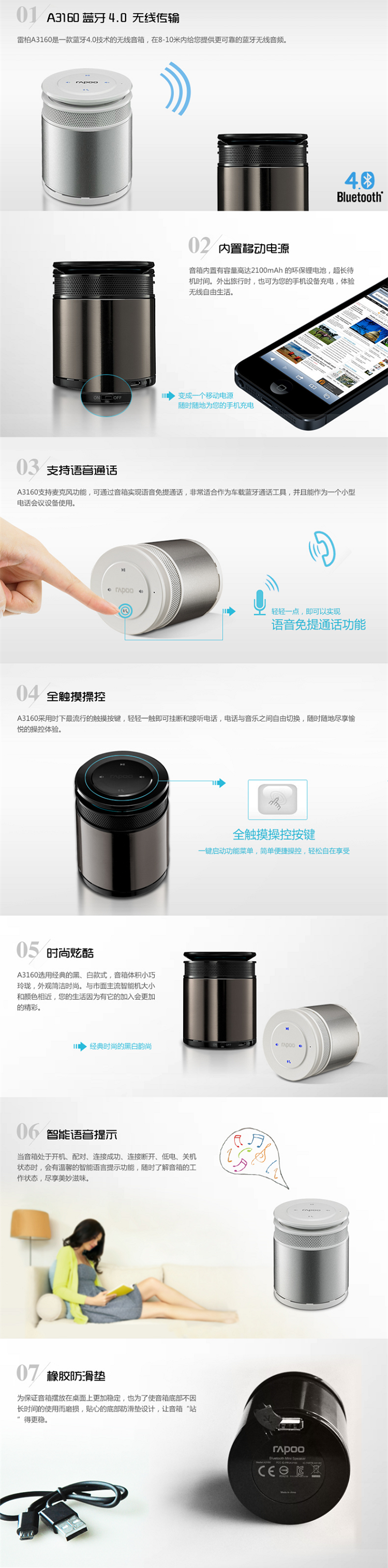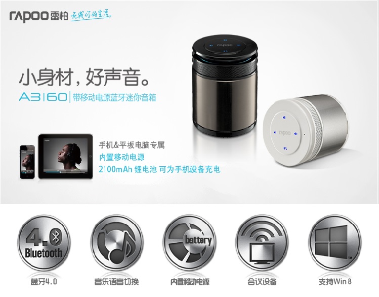 [其它] 200块出全新的雷柏(Rapoo) A3160 蓝牙4.0迷你音箱 银色 |