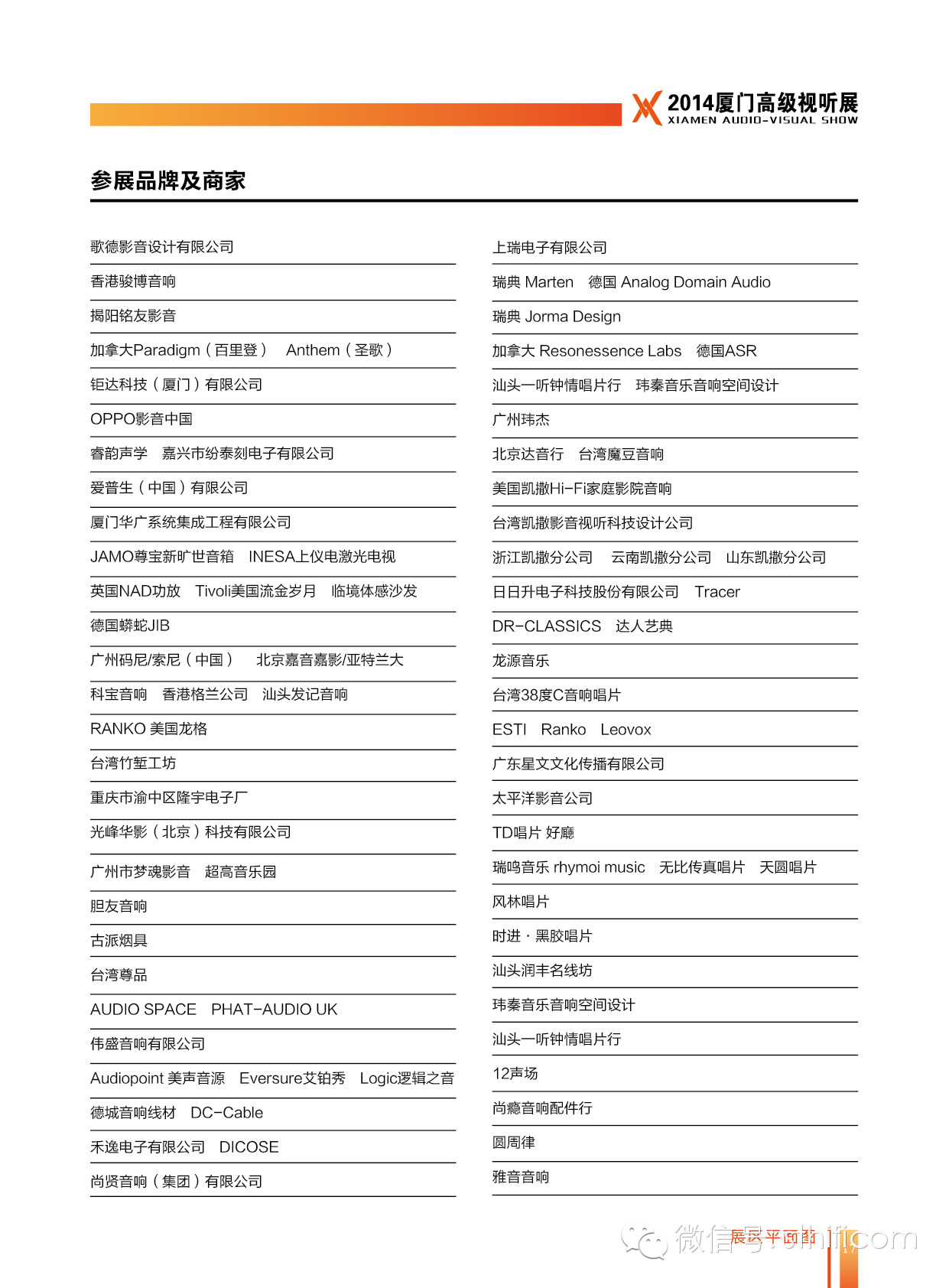 【观展指南】2014厦门高级视听展参展商名录