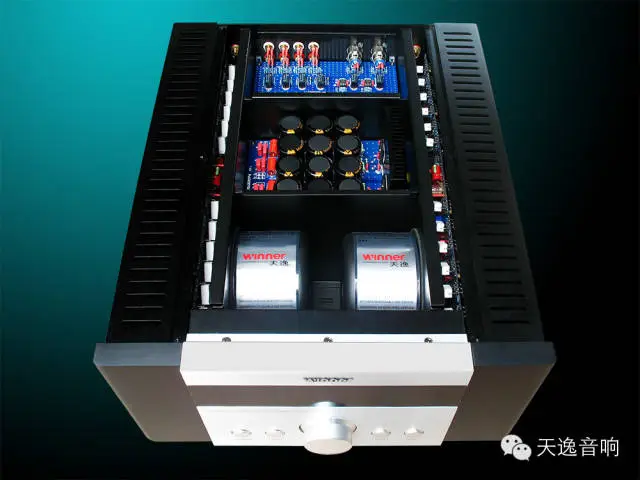 这是国产精品天逸(ToneWinner)名扬四海的高保真纯甲类合并式旗舰功放,开盖可以见证它的用料非常扎实,巨大的双环牛,巨型的滤波电容群体,巨大的外露式散热器,48只150W的音频专用大功率晶体管阵,重达近50公斤的体重,无一不彰显着它的价值和高贵的血统......