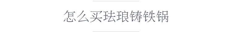 买锅的时候,可以从锅型入手,再考虑内壁和容积。 珐琅铸铁锅有很多锅型:炒锅、煎锅、炖锅等等不一而足;内壁也分黑色和白色两种。白色珐琅内壁很好看,但容易被染色,多用在炖锅上;黑色珐琅内壁比较耐用,不容易起油烟,多用在炒锅和煎锅。珐琅铸铁锅的容积也不尽相同,比如2升的炖锅就适合做 2~3 人吃的炖菜。要根据自己的实际需求来挑选珐琅铸铁锅。