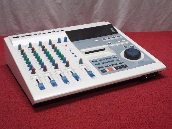 Yamaha's new multitracker, it incorporates a lot of nice features. The 4-channel mixer is a quasi-in-line design allowing either four main mic/line inputs (with two balanced combi-jack connectors) or the MD track replays to be processed. There are also a further four line inputs (intended for two stereo effects returns), 3-band EQ on the four main channels, two aux sends and a stereo cue buss. On mixdown, the four MD tracks can also be combined with four live inputs, and each track is provided with a direct output should you prefer to use an external mixer