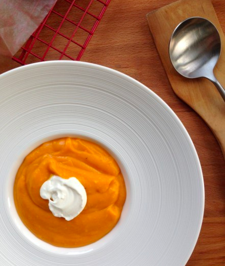 做法:将南瓜洗净,去皮,切块,蒸熟。将冷却的南瓜块放入榨汁机中,同时加入,煲好的猪骨汤,白土司,榨成汁。放入锅中大火煮开。核桃在开水中泡10分钟,将外皮去掉。康姐一般会把核桃再打碎,晒在煮好的南瓜汤上。