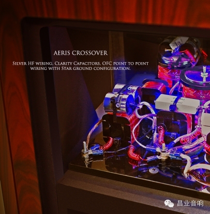 10、AERIS用料很猛的分频器,打开音箱背后专门的小LED灯即清晰可见,也许LEGACY想大家知道它的良苦用心吧——高音用银线,CLARITY极品电容,搭棚焊接,星型接地。