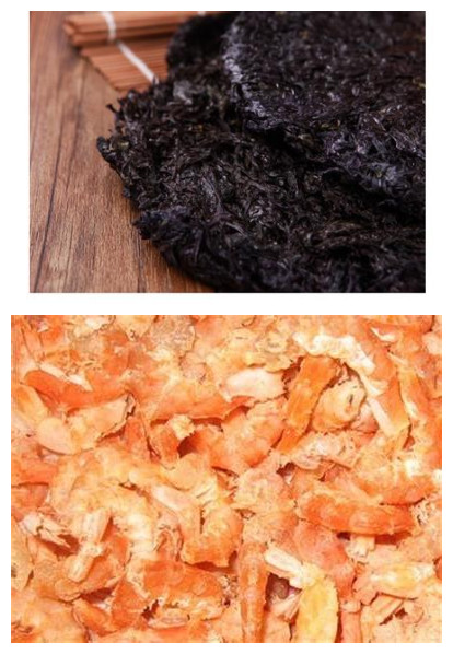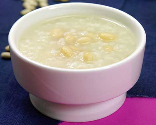 6.虾皮紫菜补钙豆浆 原料:黄豆40克,大米15克,紫菜10克,虾皮10克,小米10克,葱少许。 调料:盐、味精各适量。 做法: 1.将黄豆预先泡好;紫菜、虾皮、大米、小米淘洗净;葱切碎。 2.将全部材料一起放入豆浆机杯体中,加水至上下水位线间,接通电源,按“五谷豆浆”键,待豆浆制成即可。 3.在做好的豆浆中添加少量盐及味精调味,即可直接饮用。