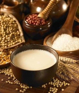 用料:黄豆85克,水1。3升容量可随意增减、风味营养豆浆最佳配搭比例,糖适量(一定要豆浆做好后放入) 归经:入脾、胃 功效:补虚、清热化痰、通淋、利大便、降血压、增乳汁 建议:加3~~5粒杏仁于用料中,则所熬豆浆更鲜、更浓 2.花生豆奶 用料:黄豆、花生、牛奶200克,水 制作:将浸泡过的黄豆花生放入豆浆杯,水和牛奶放适量 归经:入脾、肺 功效:润肤,盒肺气、补虚