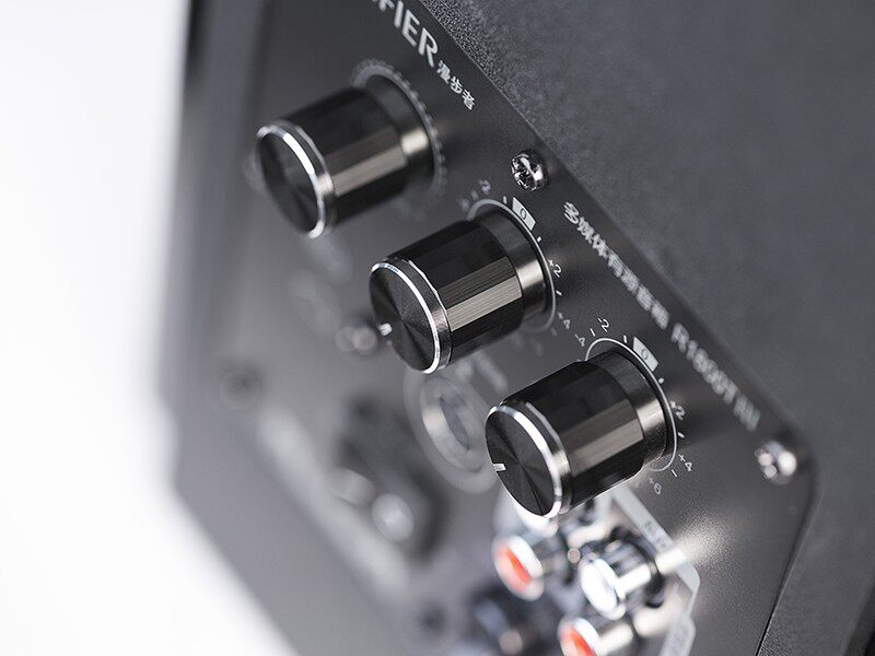 漫步者R1800TIII采用了后调节设计,不仅充分利用了后面板空间,同时也保持了音箱整体视觉的统一、优雅。主音量电位器更是采用无极调节设计,不仅寿命长久,旋钮操控质感也一扫同档音箱的迟滞体验,力度适当,体验不凡。独立的高低音调节设计,也方便用户随意“烹饪”个人专属音乐口味。