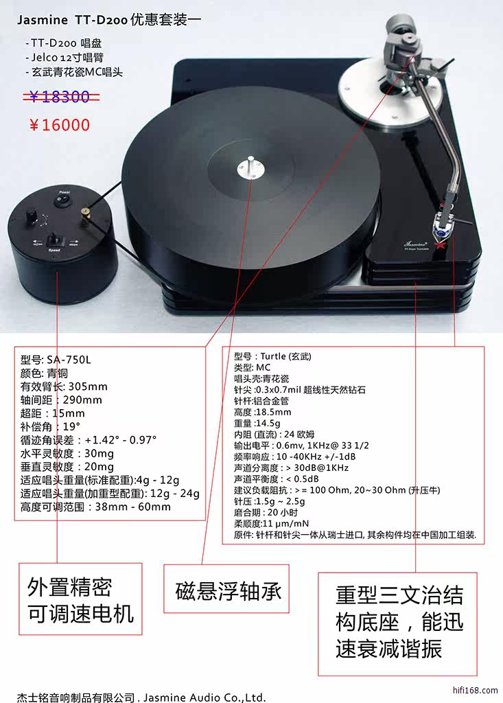 [碟机/播放器] 杰士铭 Jasmine 黑胶唱盘+唱臂+唱头 打包团购价!! |