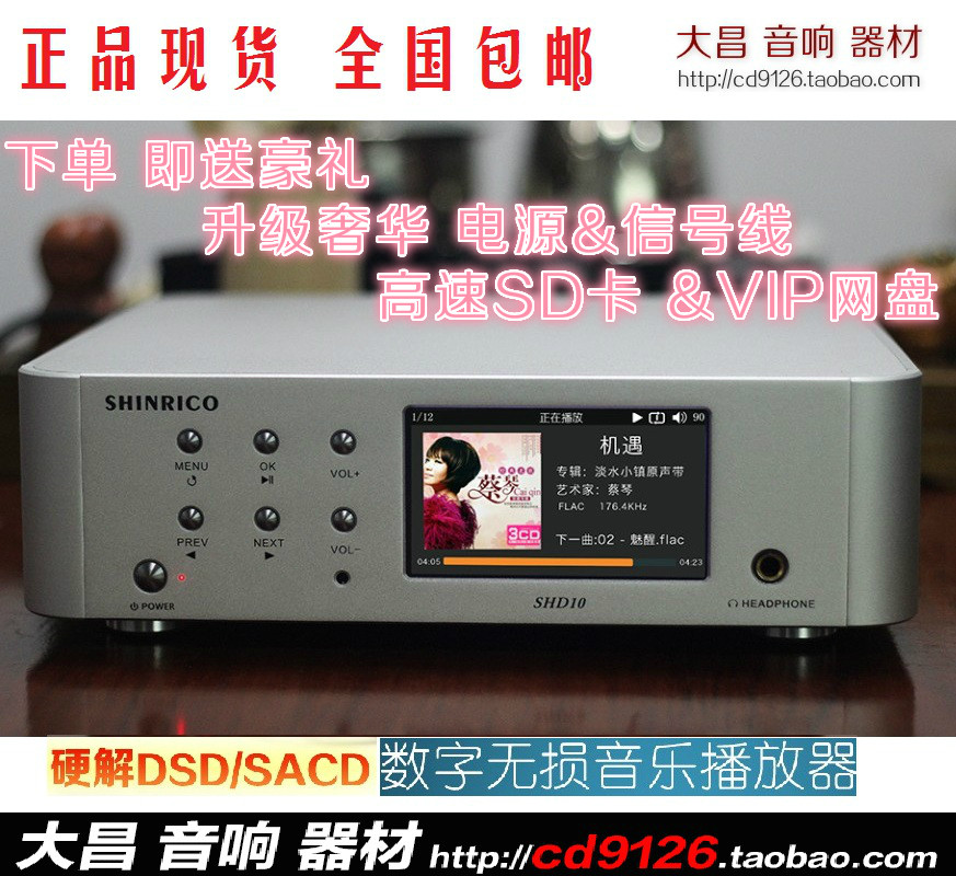 3680元套餐2介绍:  SHD10标配主机3680元: 赠送 SD卡 (考满) +升级高级信号线 +VIP网盘下载 配送 高速 Class 10代 SD卡 (均考满无损资源)! 套餐内RCA音频线,可免费升级为发烧级蛇王全平衡XLR转RCA音频信号线。