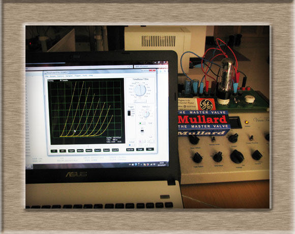 4、全球只有SuperTNT采用规模化电子管曲线特性曲线实测(国内很多所谓高端管所配曲线基本上都是假的,只有天津有两台Sofia测试仪,很可能坏了,那东西比较娇贵),很多管子的整体状态只有通过曲线测试才能看出来。下面就是SuperTNT正在给Mullard EL34复刻版预先加灯丝电压预热,我们并没有使用曲线测试仪自身的灯丝电源,因为要用来进行曲线配对,所以必须保证灯丝电压的绝对精度,使得每个管子都在相同的状态下进行对比,另外特性曲线测试仪的主动激励源也是保证可对比性的重要一环,国内晶体管曲线图示仪的被动激励源模式只能看看: