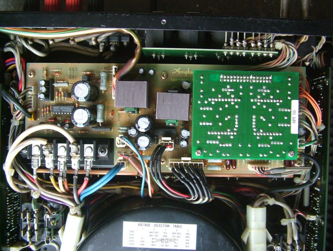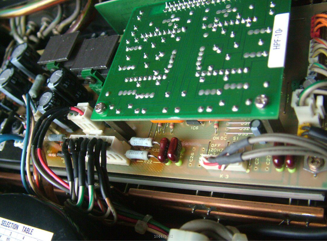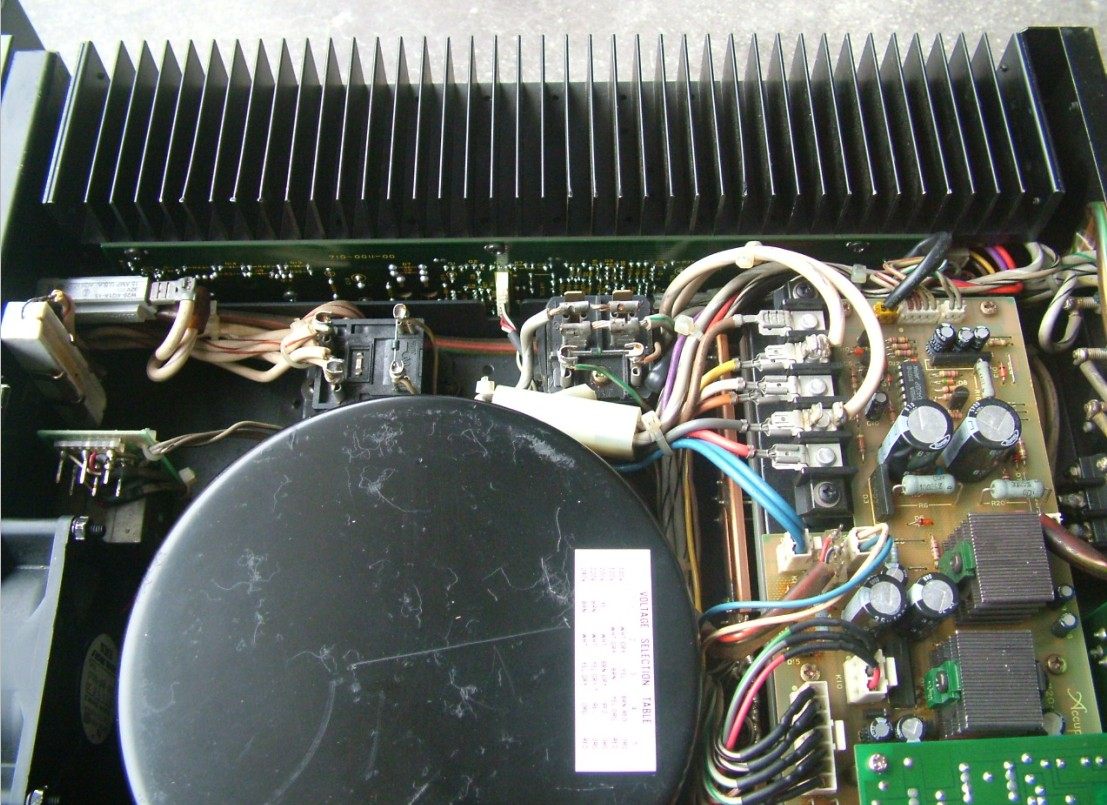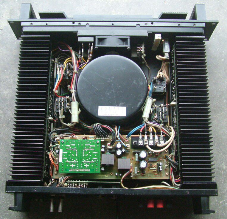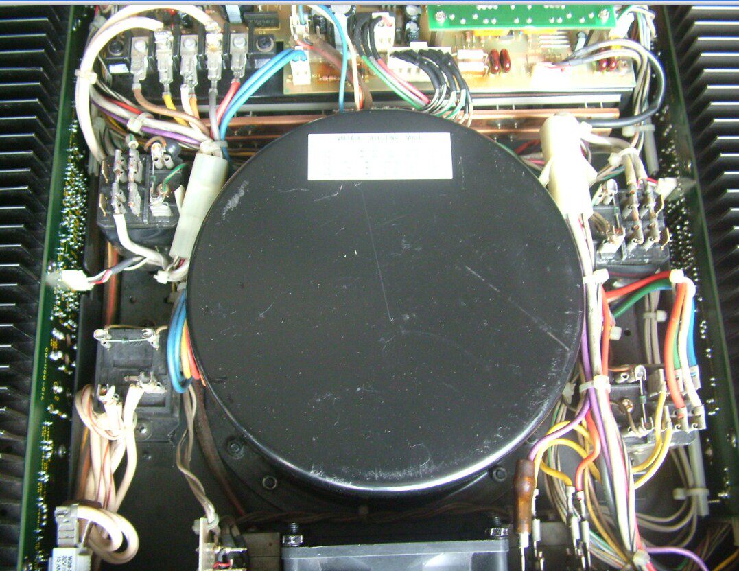 机器采用每声道20只东芝大管放大 ,日本产 ,220V电压. 机上盖从新做过.有一边声道换过一对功放管(换上的管也是拆自进囗机同型号的管.电路板也有点烧焦以处理好)有个别地放补焊.其他无修动.另一声道全没修动.机状态非常好.声也非常好.介意的和追求完美音慎入. 做工和用料不用多说,典型的世界名厂风范,整机20对东芝音响名管,6个极品大电容暗藏机底。声音更不用说,相信很多资深的发烧友都有体会。用它将天浪监听system215音箱推得帖帖服服,中高频极为细腻,低频的弹跳力不是一般的功放能比。这机虽然有风扇,但是风扇的噪音基本是听不到的,风扇的转速分3段速由机内的温度感应系统全自动控制切换。 电压100V~240V(全球兼容电压),500w+500w/2Ω,450W+450W/4 Ω(桥接1000w), 300W+300W/ 8Ω(桥接900w),120W+120W/16 Ω(桥接500w),入力感度(0db=0.775V)+4dB ,消費電力950W,重量 21kg ,