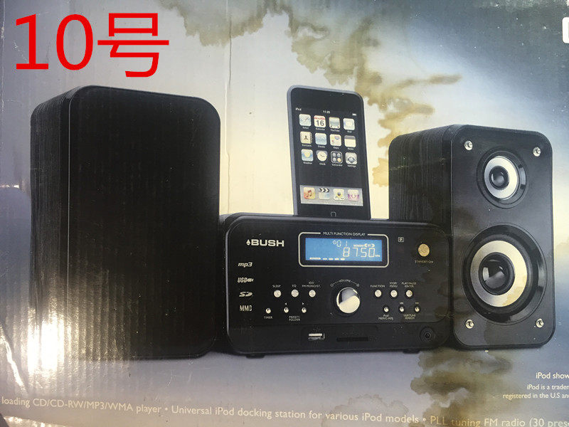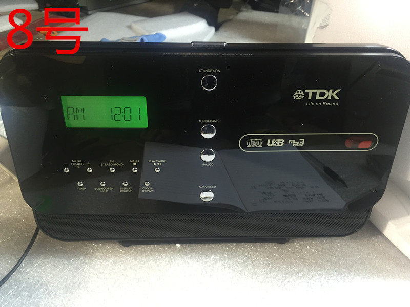 8号:日本TDK 一体机,桌面发烧音响,带CD,带收音机,遥控,液晶屏(七彩),USB接口,SD卡接口,AUX音频输入,IPOD四代插座,带环形收音天线,3喇叭,带低音,超重超结实,逆天价199包邮!总共两个,一个没有TDK标志的169元包邮!尺寸32*22*18