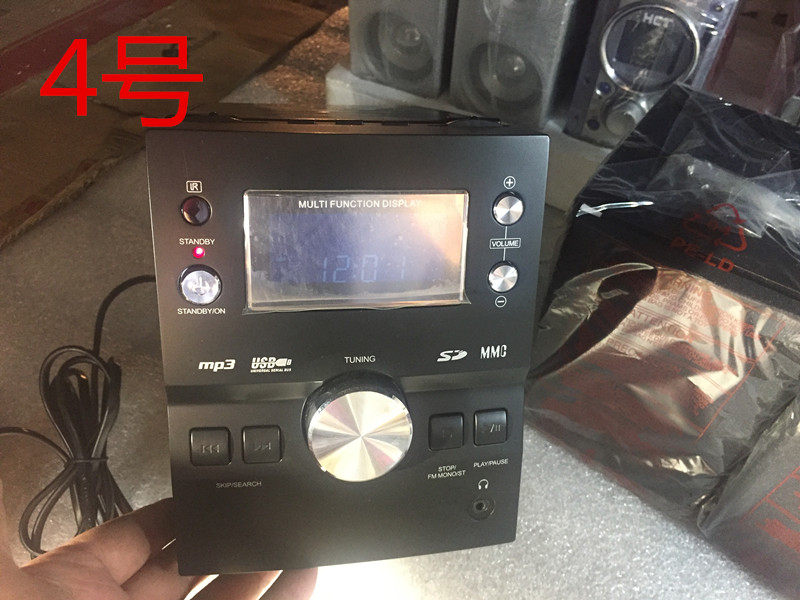 34号:家乐福,桌面CD机,带收音,USB,AUX,SD,液晶屏,遥控,耳机插口,全能性价比好货,只有两个,一个螺丝有轻微锈迹,特价99元包邮!主机13.5*25*17卫星箱13*16*17