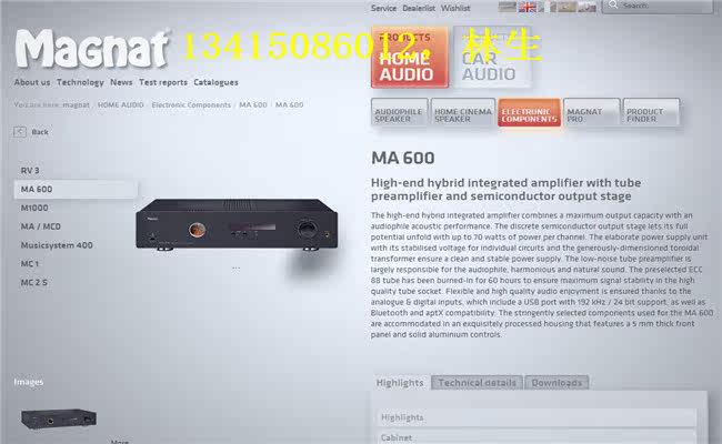德国 MAGNAT/密力 MA600 甲类胆机功放150W 全新原包行货带保卡 特价出售:6200元官方网:http://www.magnat.de/en/home-audio/electronic-components/ma-600/