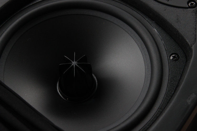 可以看到,它除了一个1寸的丝带高频单元、一个7寸的铸铁支架低音单元,还有侧面的2个被动式低音辐射单元(一边一个)。