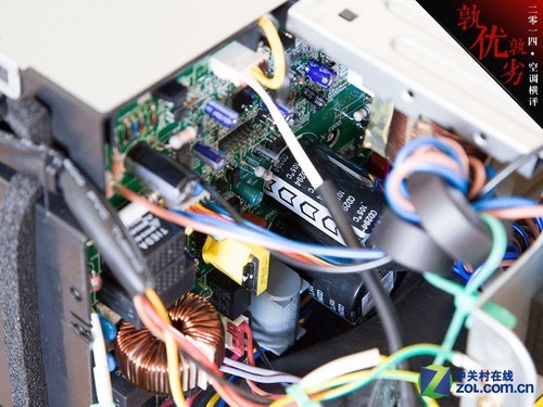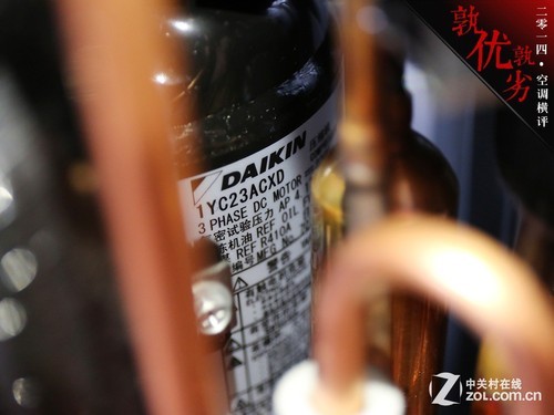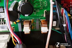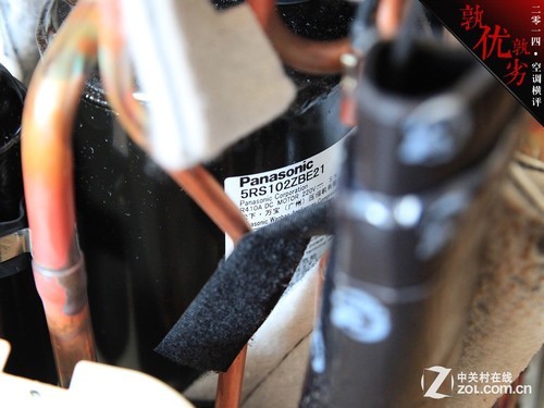 大金:大 金空调采用了自由品牌,钕磁体摆动式直流变频压缩机。风扇部分采用了由芝浦提供的直流无刷电机。压缩机经过专业而细致的包裹,整体做工上乘。唯一不足的就 是,电路的保护设计略显单薄,仅使用了一层橡胶材质进行保护,没有专业的电路防护盒。因此在评分部分仅给予了4分的成绩。
