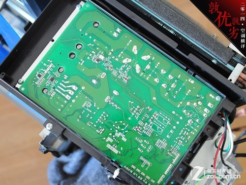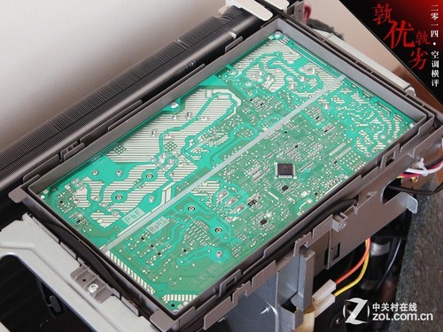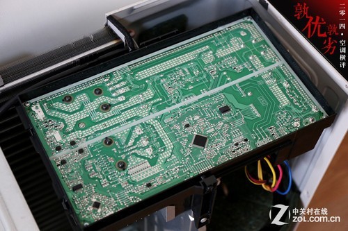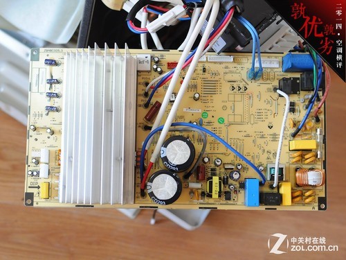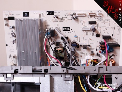 三 菱重工SRCMB35HVBG变频空调采用了宽大的机顶设计,配有独立的电路盒,电路盒为金属用料,同时电路盒顶部配有软性材料,与机顶盖接触,一定程度 上减少机身共振。延续了三菱重工在电路方面设计的方式,宽大的电路板优化了PCB的设计难度,高压区与低压区控制电路采用分开的设计方式,降低电路间的串 扰,提高空调运行的稳定性。