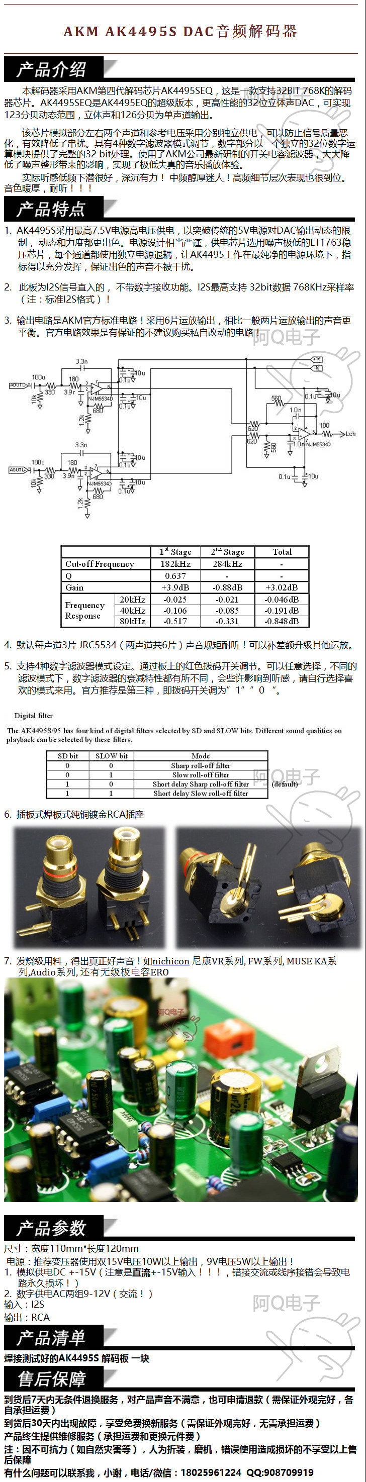 [其它] DIY AK4495S AK4495SEQ DAC I2S 32BIT 768K解码器 |