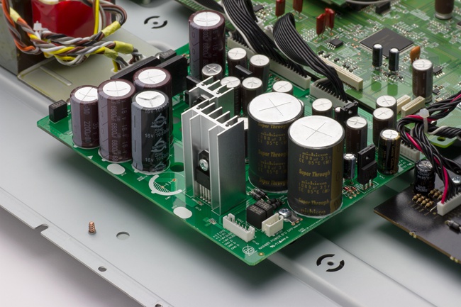 底盘坚固,具有双层底盘基础结构。NA6005以多块独立电路板取代单块大电路板,以防相互干扰 - 甚至耳机输出也专门设计的电路板。 NA6005内部装有高品质主动和被动元件,包括多个高速、高电流肖特基二极管,拥有超快响应时间和高逆流保护功能,外加高保真级电容器和高精密电阻器。 待机充电系统