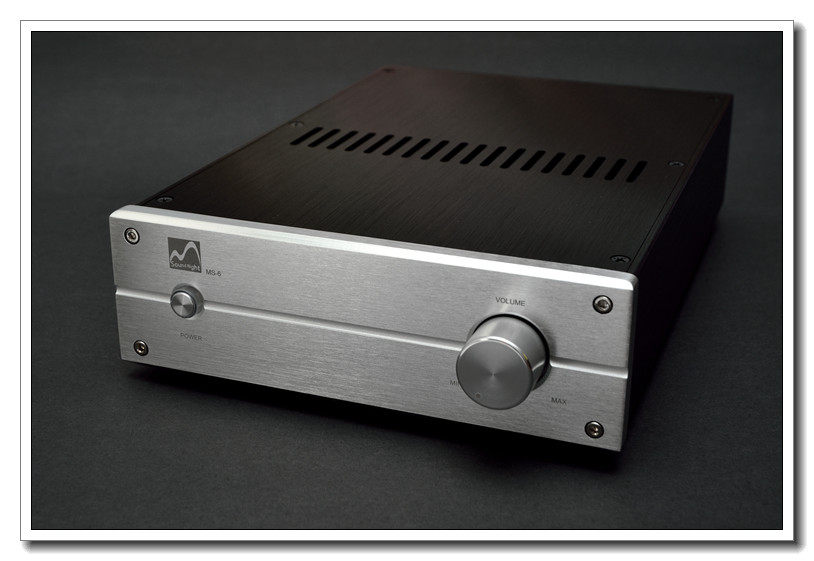MS-6在声音方面仍以中性平衡为目标。采用可更换前级运放(不同的运放声音风格不一样,默认是国半顶级金封LME49720HA)+3886并联后级的前后级综合放大的电路结构。因采用了后级功率管并联方式使得本功放在功率及推力上面均有不错表现。在4欧负载下,输出功率可以达到每声道100W。