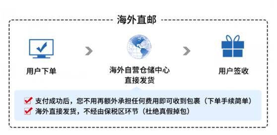 采用海外直邮模式 不经由国内物流中转 海外直接发货 100%保证正品