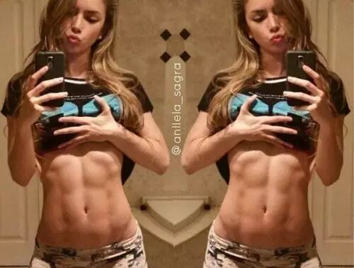 Anella Sangra是哥伦比亚21岁的模特,身高174厘米。 2014年她在网上晒出一组自拍照,秀八块腹肌,一夜爆红网络。