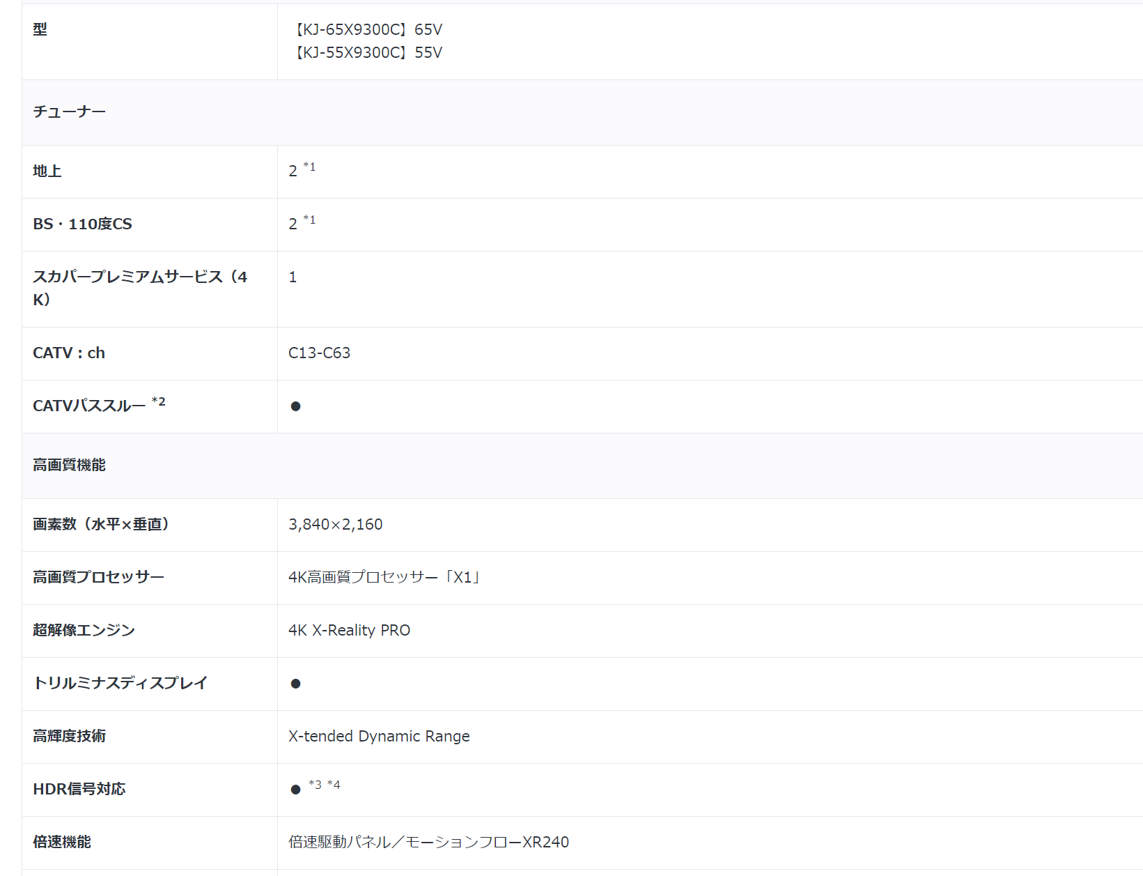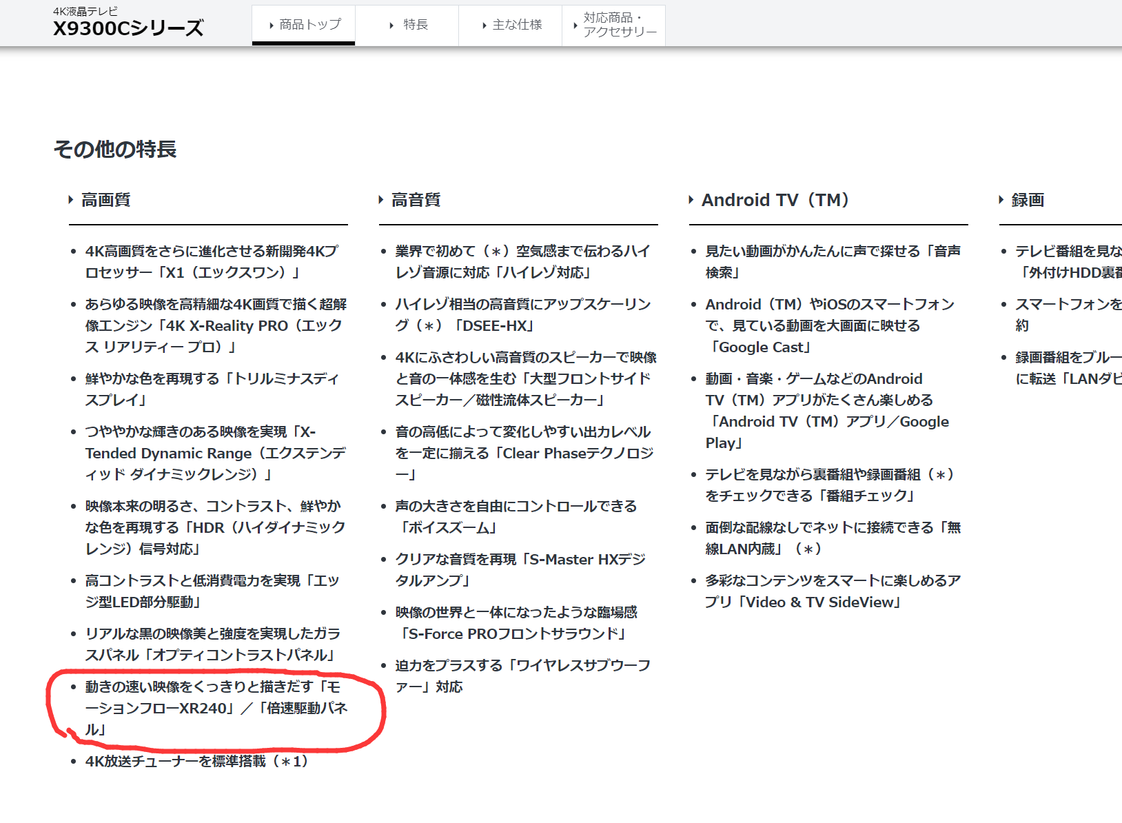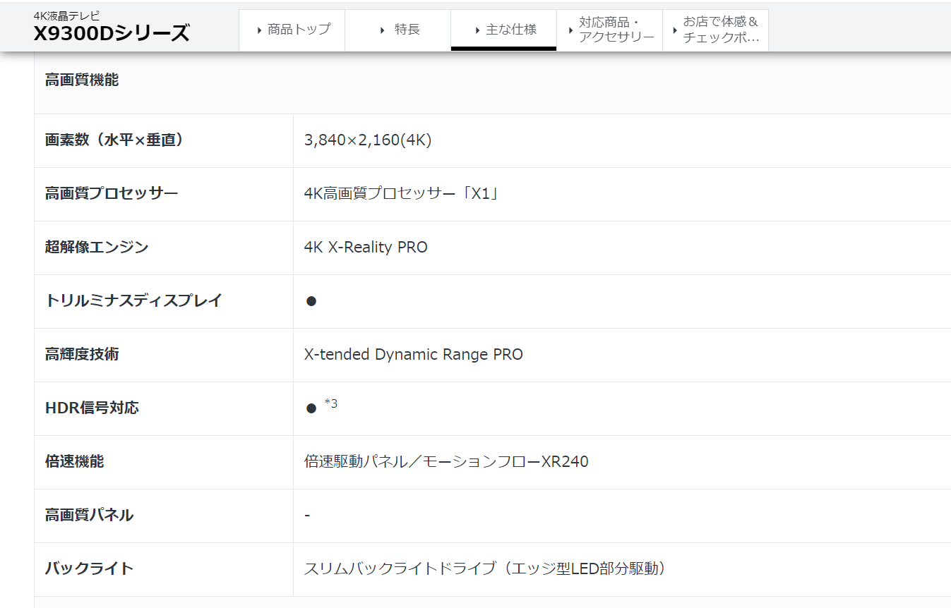 2016年机型65x9300d关于面板和Motionflow™ XR注解如下: