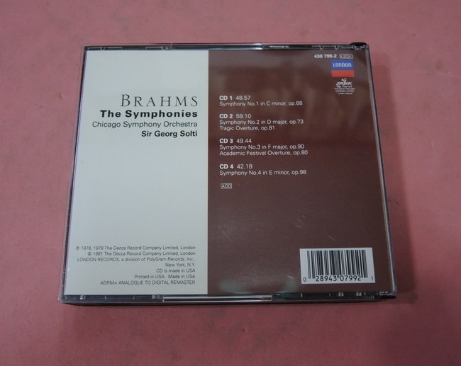 [碟片] LONDON:《勃拉姆斯4大交响曲》索尔蒂/芝加哥交响乐团,4CD,全新美版拆封(已出) |