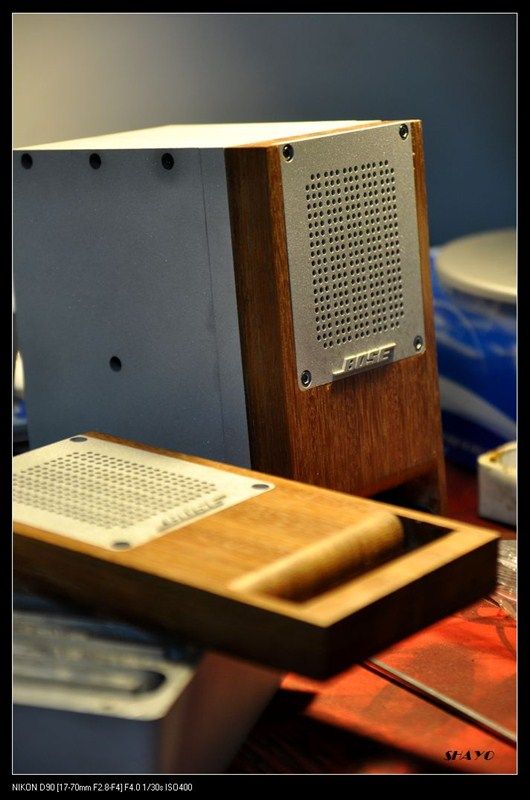 BOSE 单元制作的全铝音箱,前面为进口木材!需定做! 一对用30斤铝在FOXCONN(富士康)机床加工制成,重料! 外观尺寸:高度165,深度130,宽度85-90 喇叭采用BOSE BOSE Wave III 妙韵3里面的2.75寸发烧全频单元