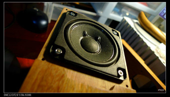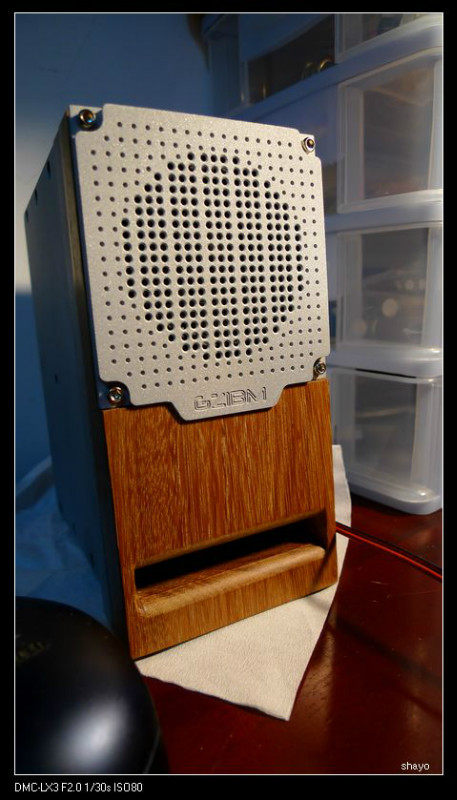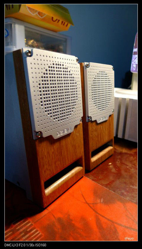1、外观强烈的金属质感,全铝铝材,加工好喷细沙制作,非常强悍的视觉效果,漂亮。 2、声音个人主观感觉:声场很宽(至少比我的剧院之声宽大)高音顺耳,中音合适,传说中的低音在中音量的时候貌似还是有一点点,这个小家伙发出来的低音份量确实让人有点惊讶~86开到底,纹丝不动,这小家伙很能吃!但是隔壁就有意见了 3、此宝贝不但有俊俏的外表,且听感不俗,经过一些日子听音,在中等音量的情况下跟3寸单元有得一拼或超越之,当然,这些都是个人听音感觉,不可言传,只能自己体会~