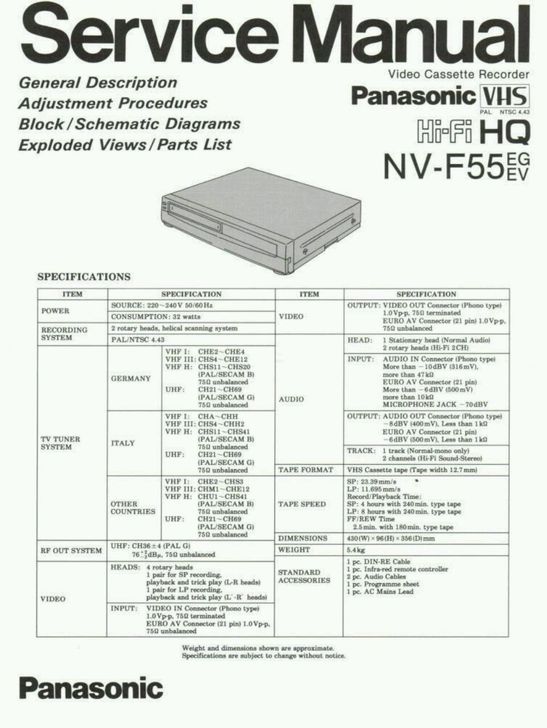 [碟机/播放器] 松下 F55录像机/录放机 中文说明书JPG版, 英文版维修手册PDF版 |