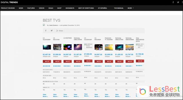 本榜单来自Digital Trends,原榜单名称叫做:“Best TVS”,最好的电视,这里其实并没有说明是液晶电视还是OLED电视,这点大家注意区别。