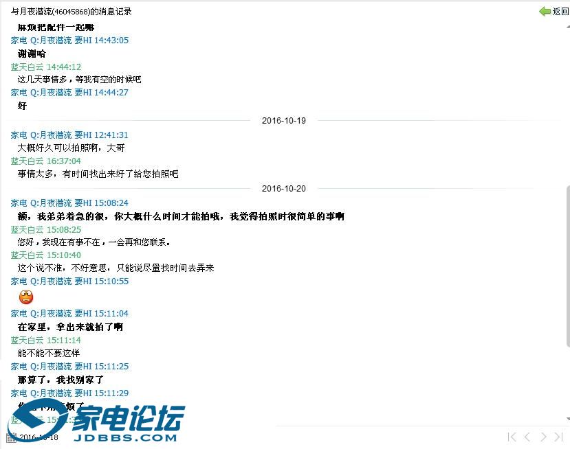 到最后过了大概4、5天,也没有把照片给到我,我这边就失信于我弟,因为从刚开始和蓝天白云HI接触我就告诉他我帮他淘到了机器,结果就是接近一周的等待无果。